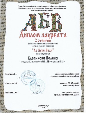 10. Ежегодно члены Научного общества школьников обучающиеся становятся победителями районных предметных олимпиад, региональных олимпиад по краеведению, географии, истории, обществознанию, биологии; межрайонного фестиваля «Европейская мозаика», «150-летие периодического закона», экологического фестиваля « Праздник реки Ижоры», краеведческой игры « Колпино. История и современность», интеллектуальной битвы «Умная команда», городского конкурса словесности и Мировой художественной культуры, городской конкурса «Большая регата», Международной интернет -олимпиады «Солнечный свет» , конкурса «Идеи Д.С. Лихачёва и современность», «Пегас-2019» и другие.
